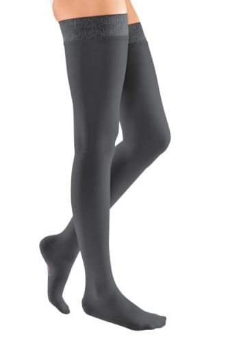 Компрессионные чулки 2-ого класса компрессии mediven elegance на широкое бедрос кружевной резинкой на силиконовой основе для женщин, заботящихся о здоровье вен и стильном внешнем виде.