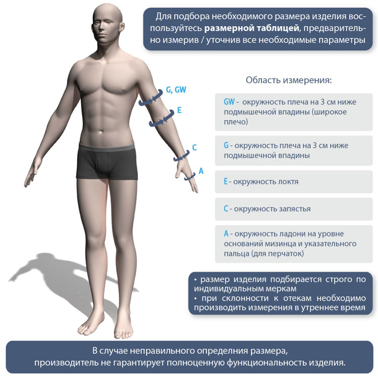 - Размер изделия подбирается строго по индивидуальным анотомическим меркам.